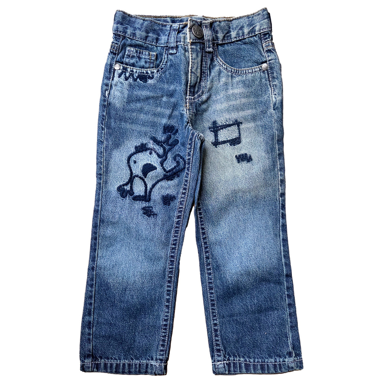 - Toddler Boys Blue Distressed Monster Denim Adjustable Waist Jeans Pants