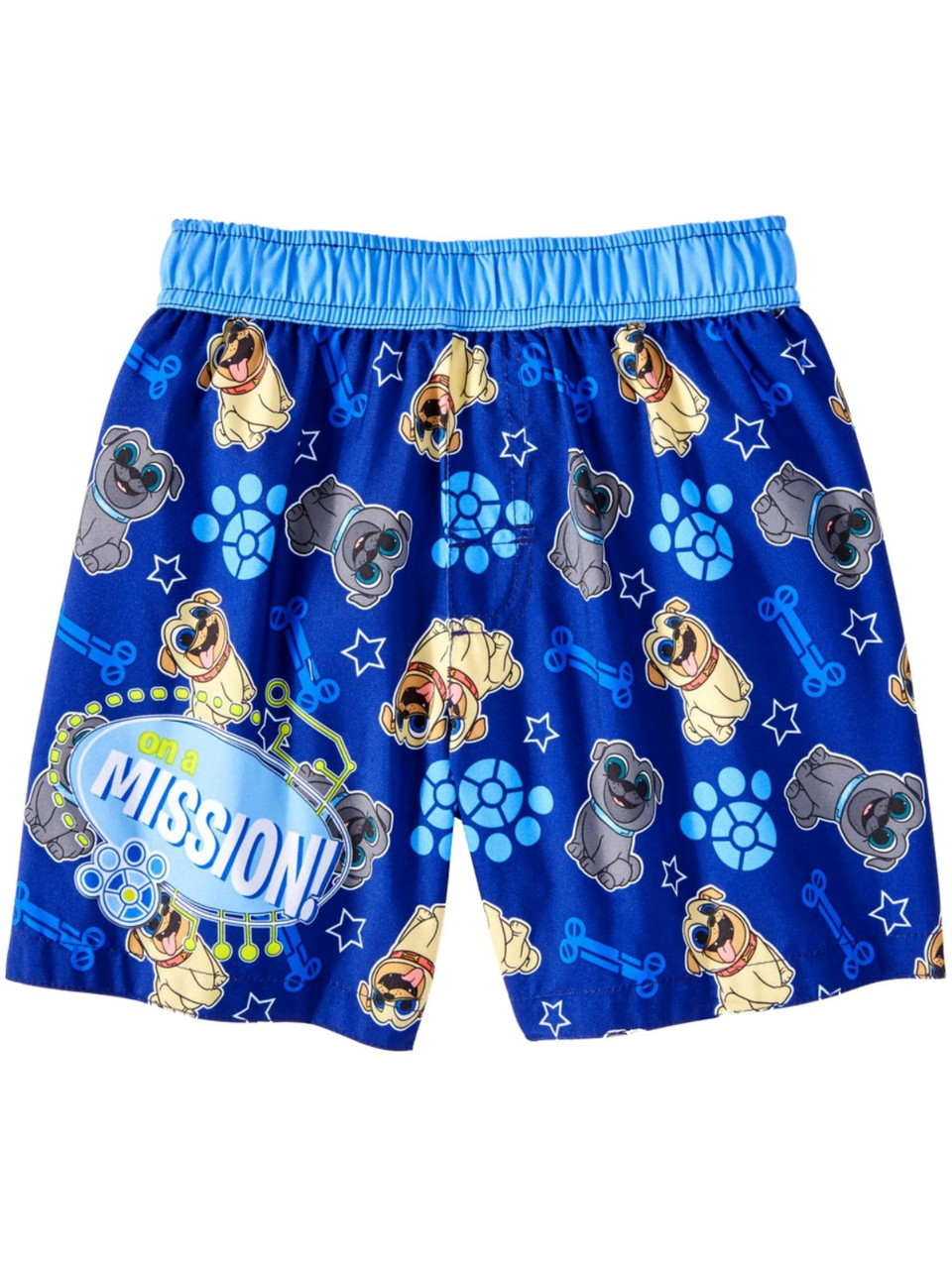 These adorable blue Puppy Dog Pals "On a Mission" swim trunks are perfect for the pool or beach!