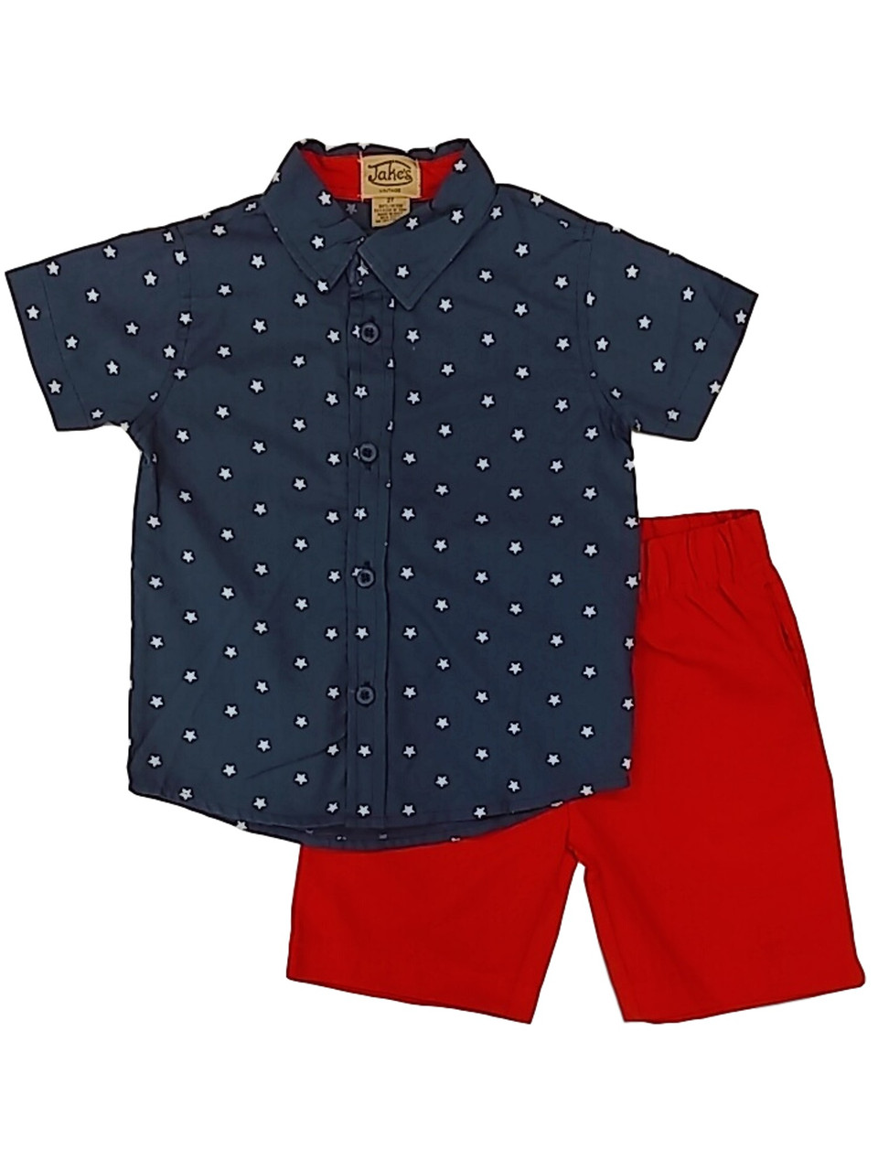 - Toddler Boys Blue Star Button Up Shirt & Red Shorts 2 Piece Outfit Set