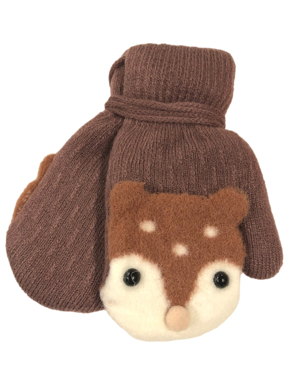 - Toddler Boys Brown Sherpa Lined Teddy Bear Mittens with String Attachment