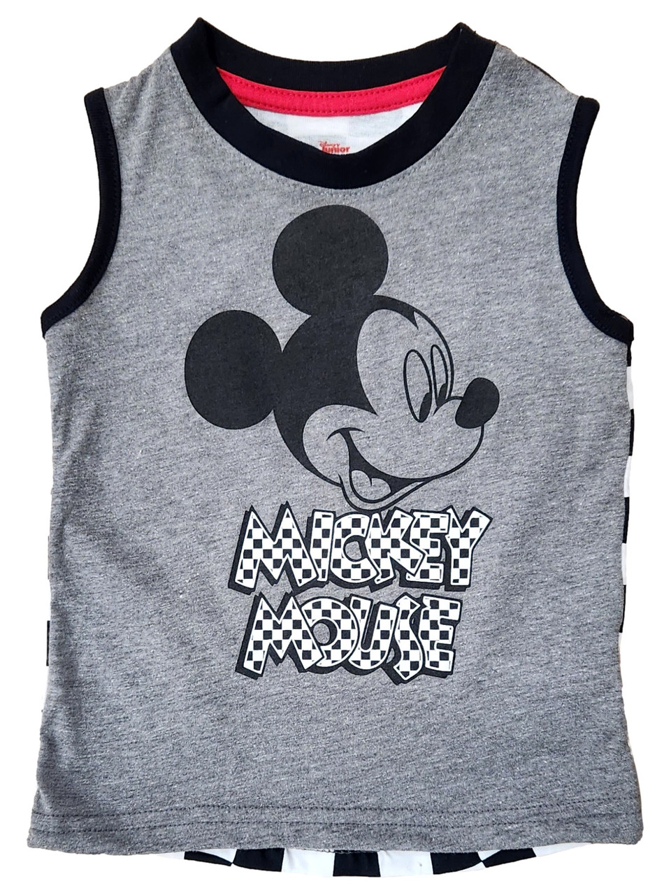 - Toddler Boys Gray Mickey Mouse Checker Back Tank Top Muscle Tee Shirt