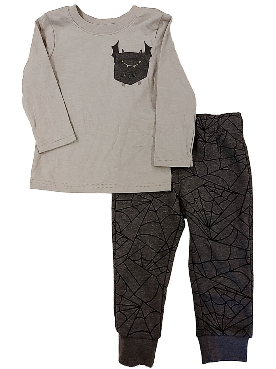 - Toddler Boys Gray Pocket Bat 2-Piece Halloween Shirt & Pants Outfit Set