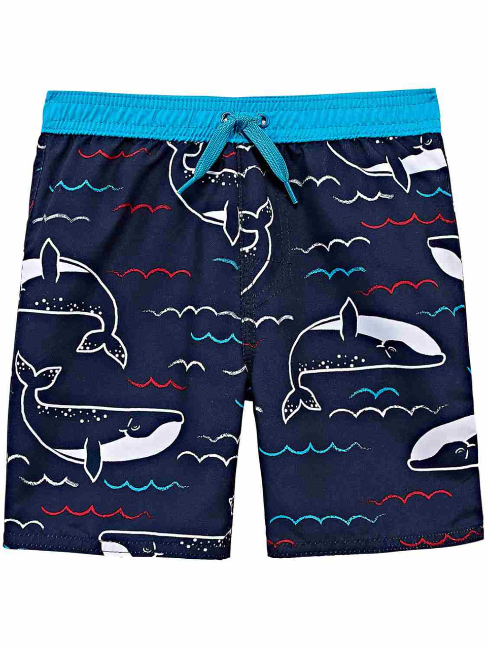 - Toddler Boys Navy Blue White & Red Whale Swim Trunks Board Shorts