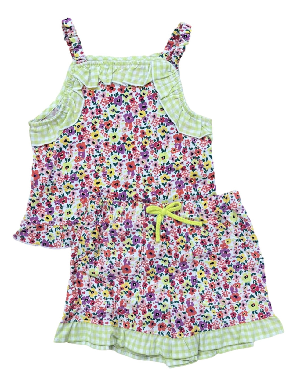 - Toddler Girls 2 Piece Colorful Floral Tank Top & Shorts Set Outfit 3T