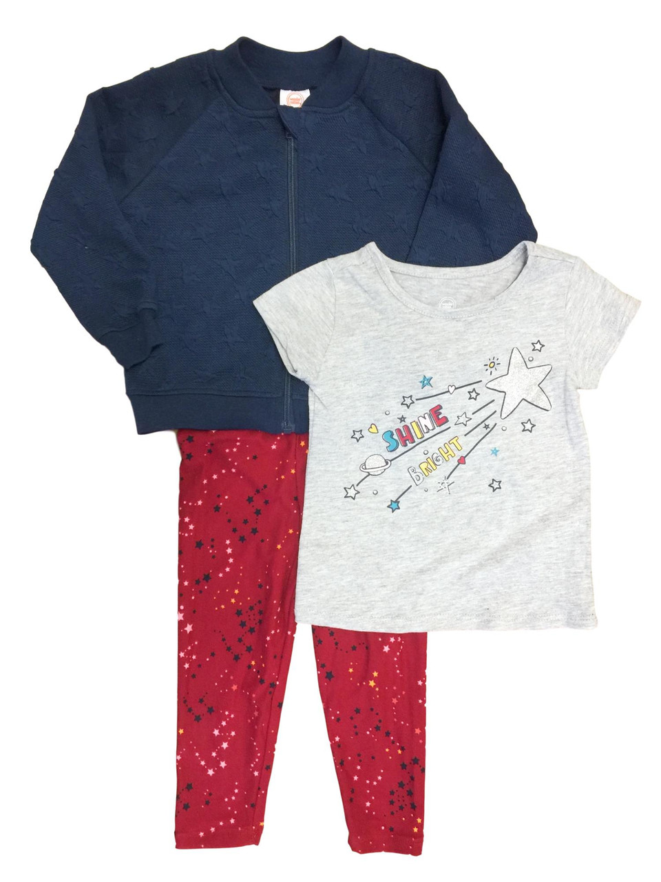 - Toddler Girls 3pc Shine Bright Space Shirt Star Jacket & Legging Outfit