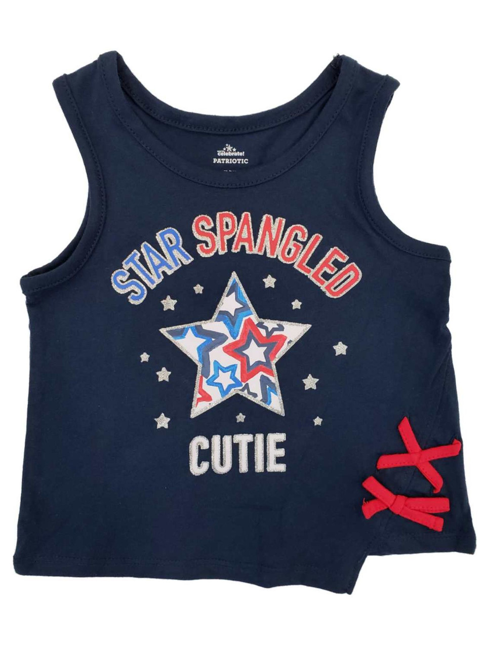 - Toddler Girls Blue Star Spangled Cutie Patriotic Tank Top Baby Tee Shirt