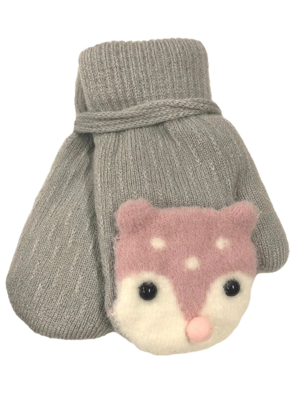 - Toddler Girls Gray & Pink Sherpa Lined Teddy Bear Mittens with String Attachment