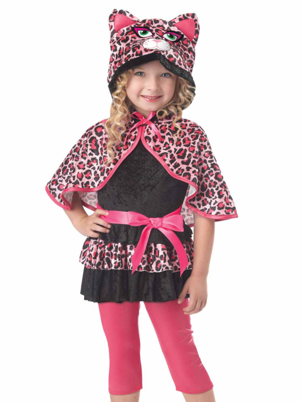 Toddler Girls Pink & Black Leopard Cutesy Kitty Cat Halloween Costume Dress 3-4T