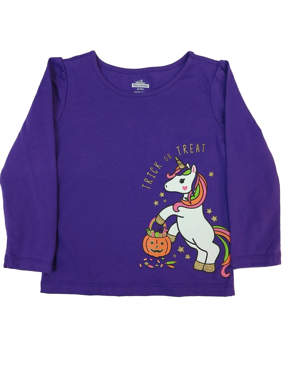 - Toddler Girls Purple Glitter Unicorn Long Sleeve Shirt Halloween T-shirt