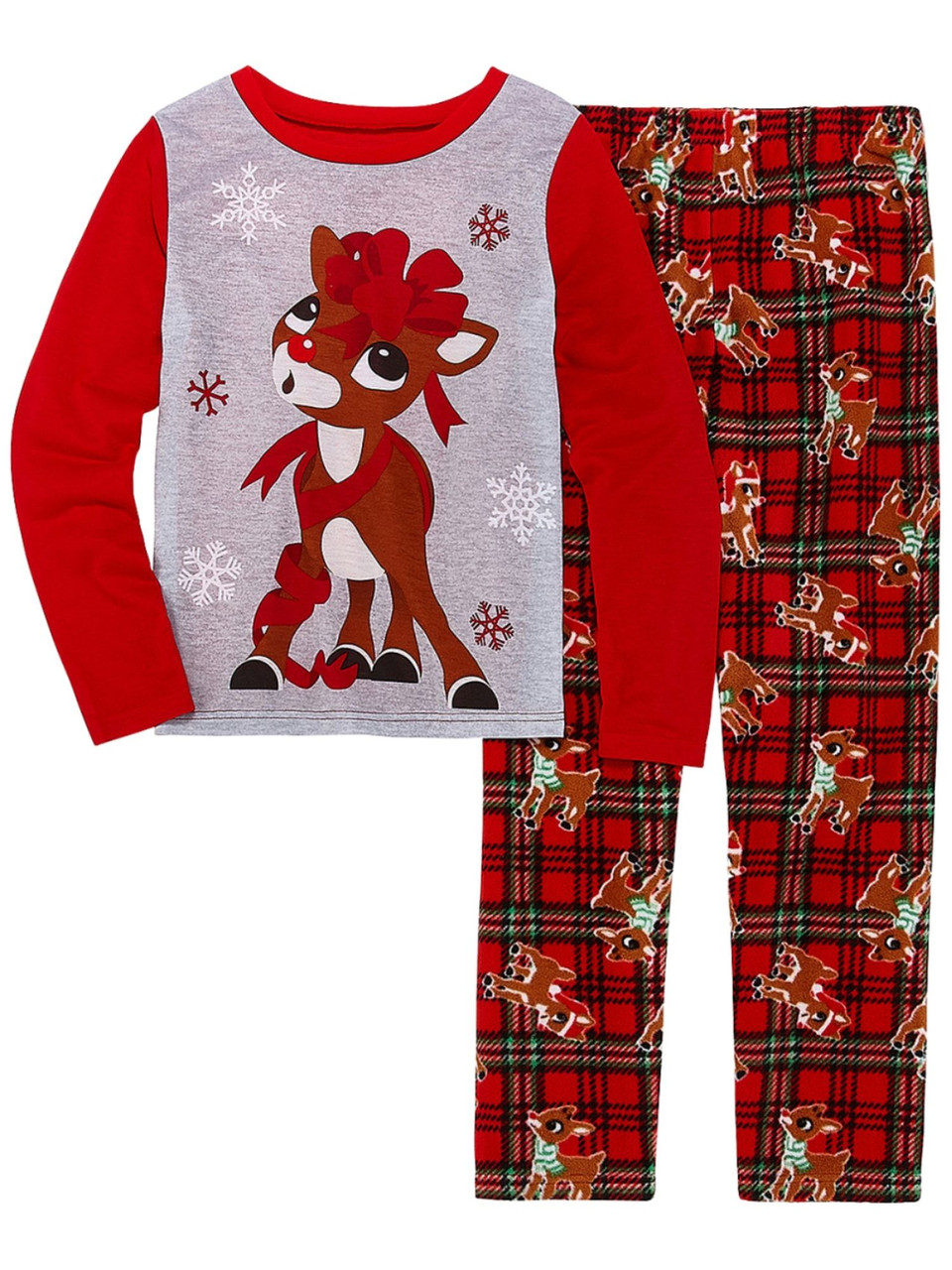- Toddler Girls Red Plaid Rudolph Red Nosed Reindeer Christmas Pajama Set