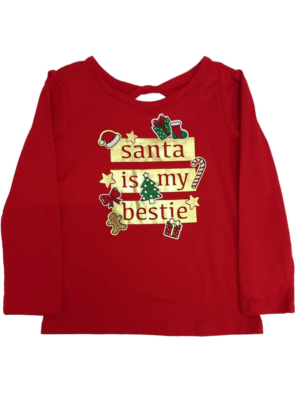 - Toddler Girls Red Santa is My Bestie Long Sleeve T-Shirt Christmas Tee Shirt