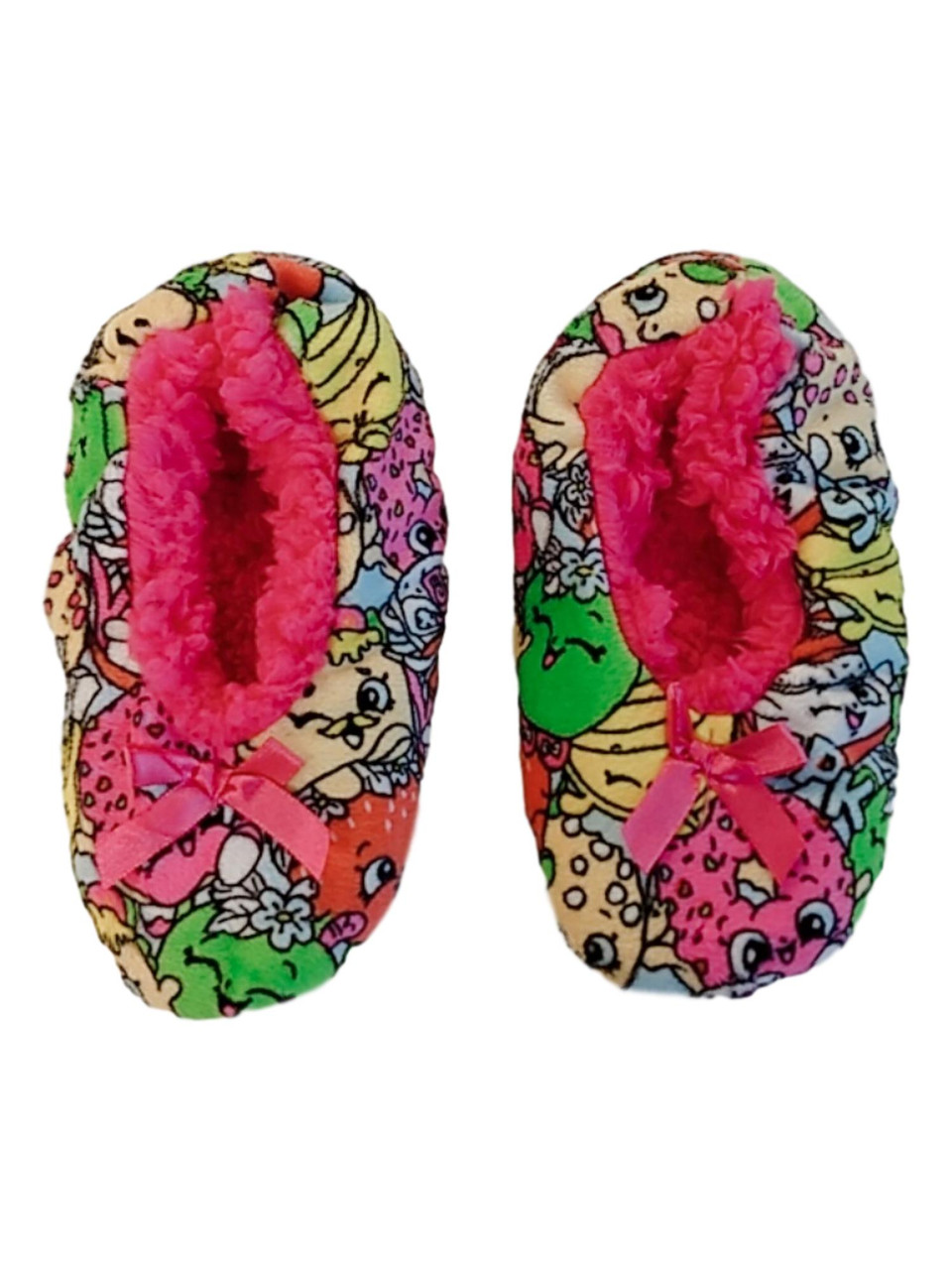 - Toddler & Girls Shopkins Pink Bow Fuzzy Gripper Sock Slipper