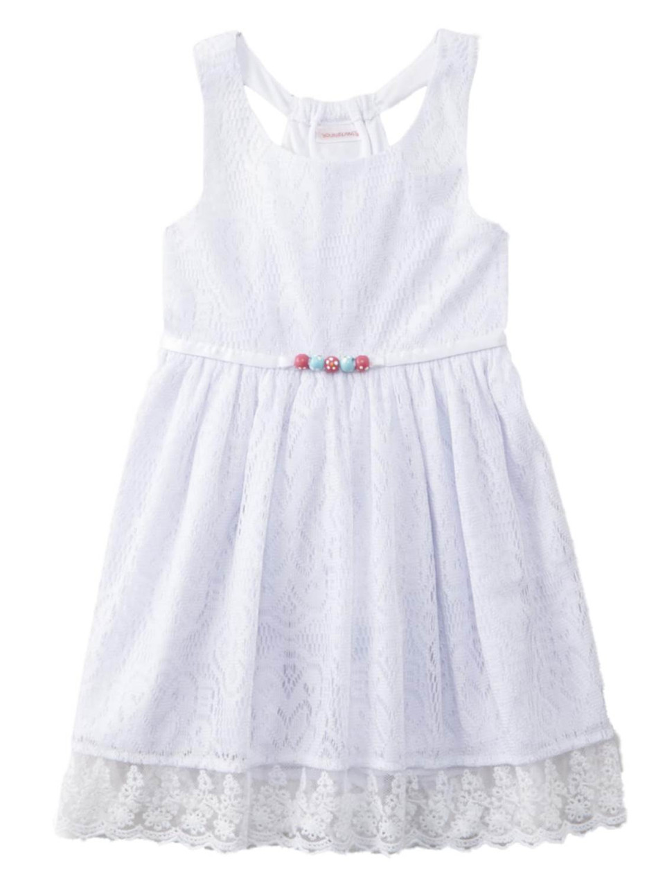 - Toddler Girls White Lace Beaded Sun Dress Sundress