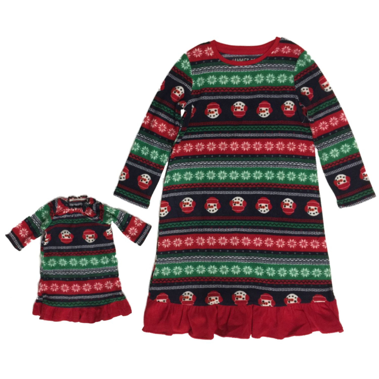 This pretty girl's blue fleece snowman nightgown comes with a matching gown for your little girl's favorite dolly!