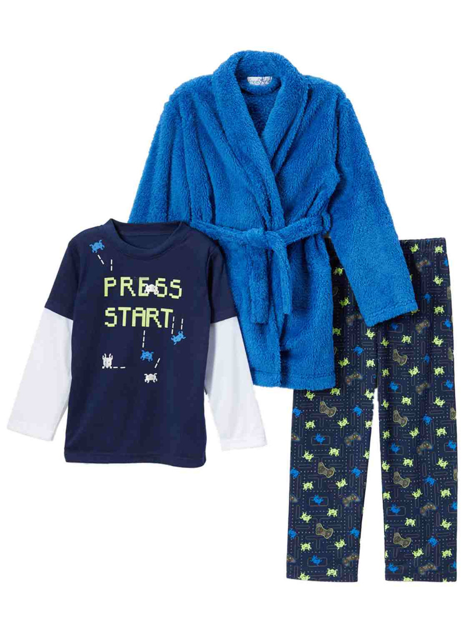 - Toddler Boys Plush Blue Gamer Hoodie Bath Robe & Pajamas Sleep Set