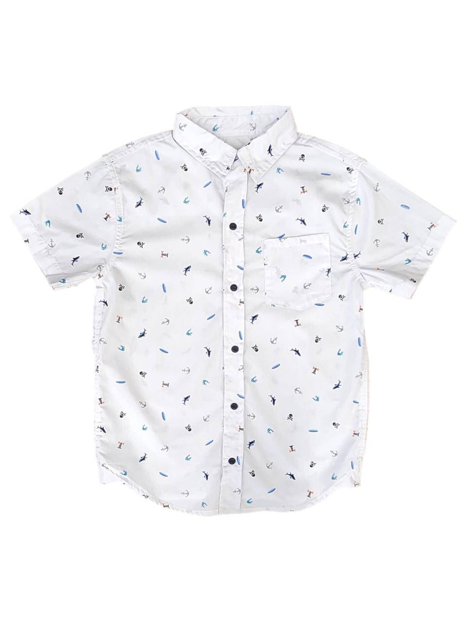 - Tony Hawk Boys White Fish & Anchor Short Sleeve Button Front Shirt M 10-12