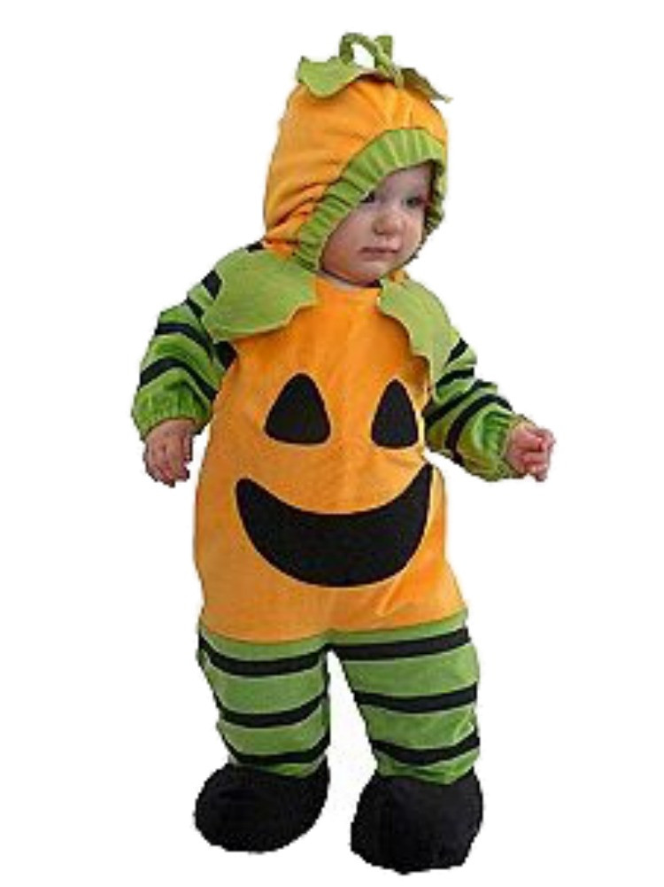 This super soft plush orange pumpkin baby costume is sure to be a hit!