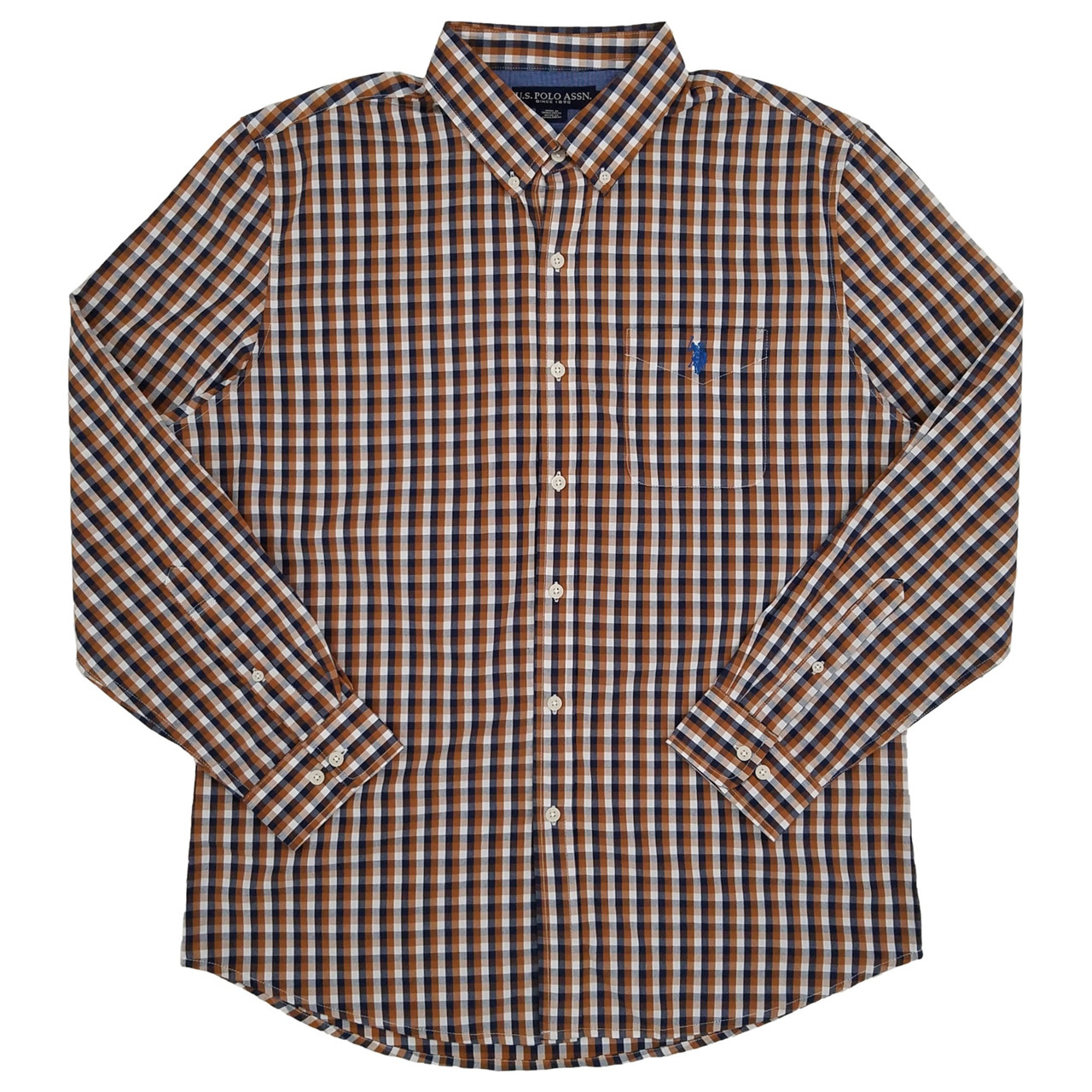 - U.S. Polo Assn. Mens Caramel Cafe Plaid Long Sleeve Button-Down Woven Shirt