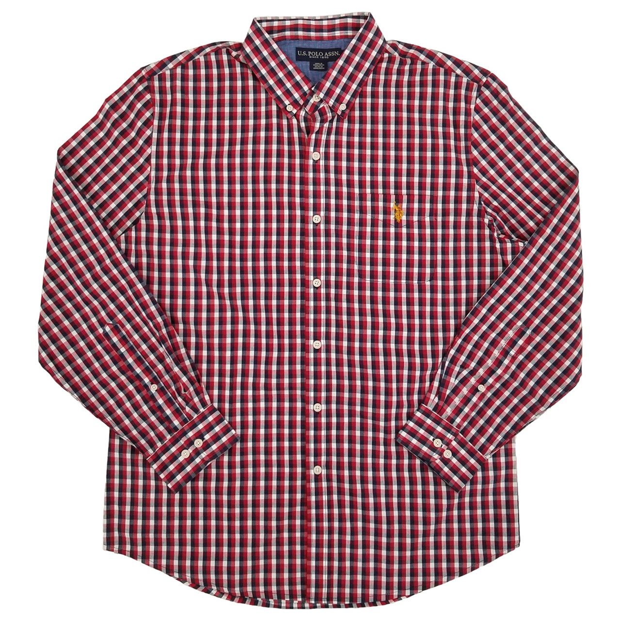 - U.S. Polo Assn. Mens University Red Long Sleeve Button-Down Woven Shirt