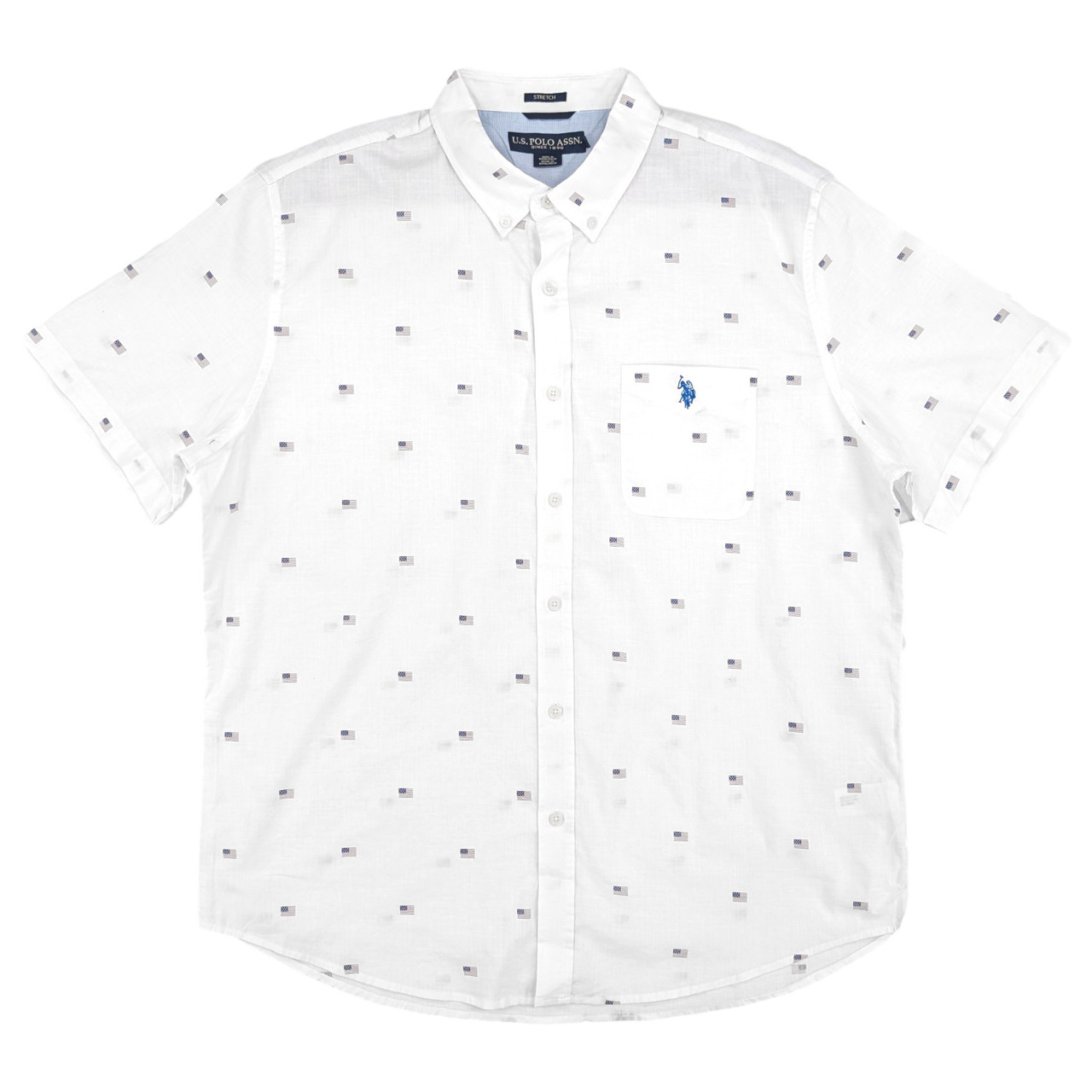 - U.S. Polo Assn. Mens White Mini Flag Short Sleeve Button-Down Woven Shirt