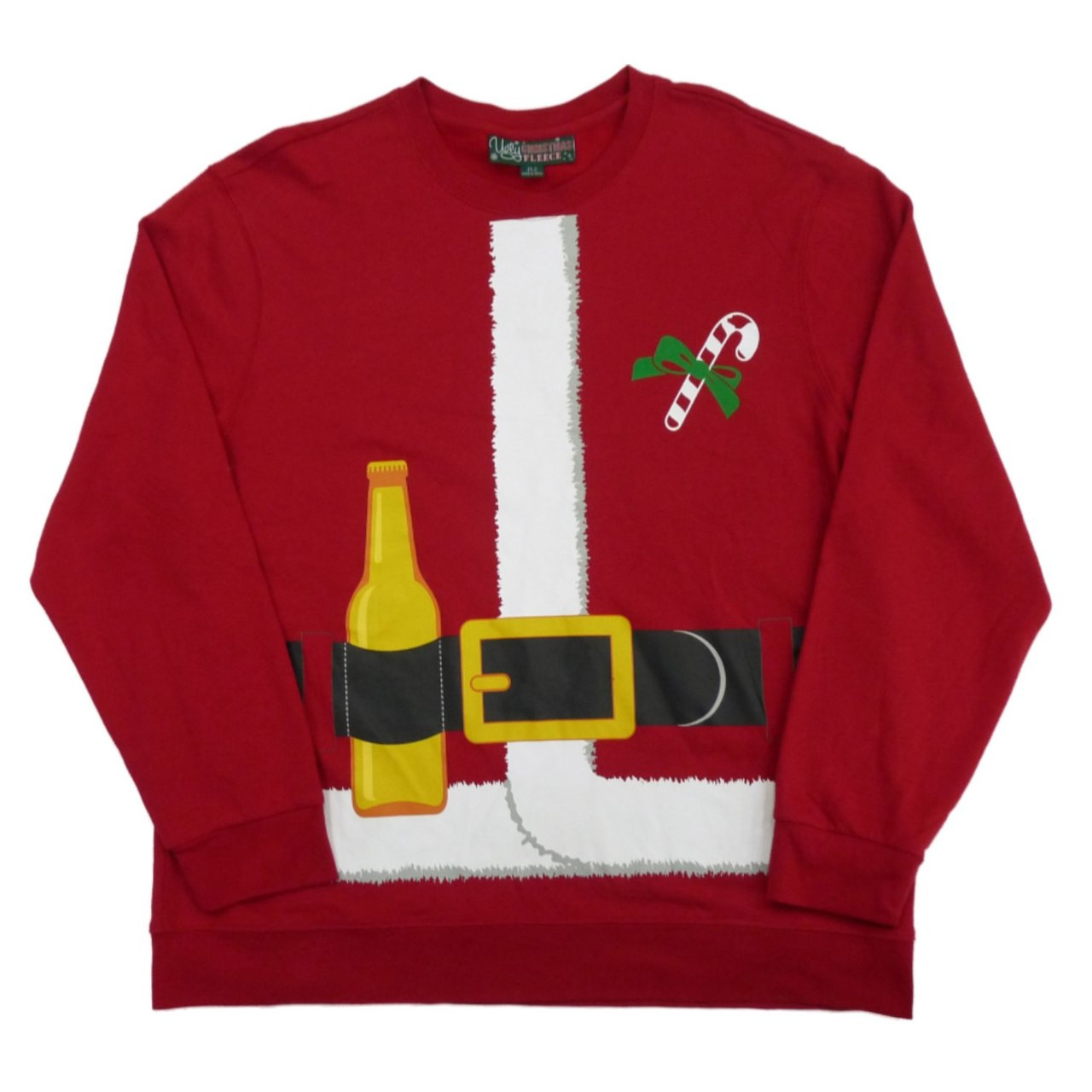 - Ugly Christmas Fleece Mens Red Santa Claus Beer Bottle Christmas Sweatshirt L