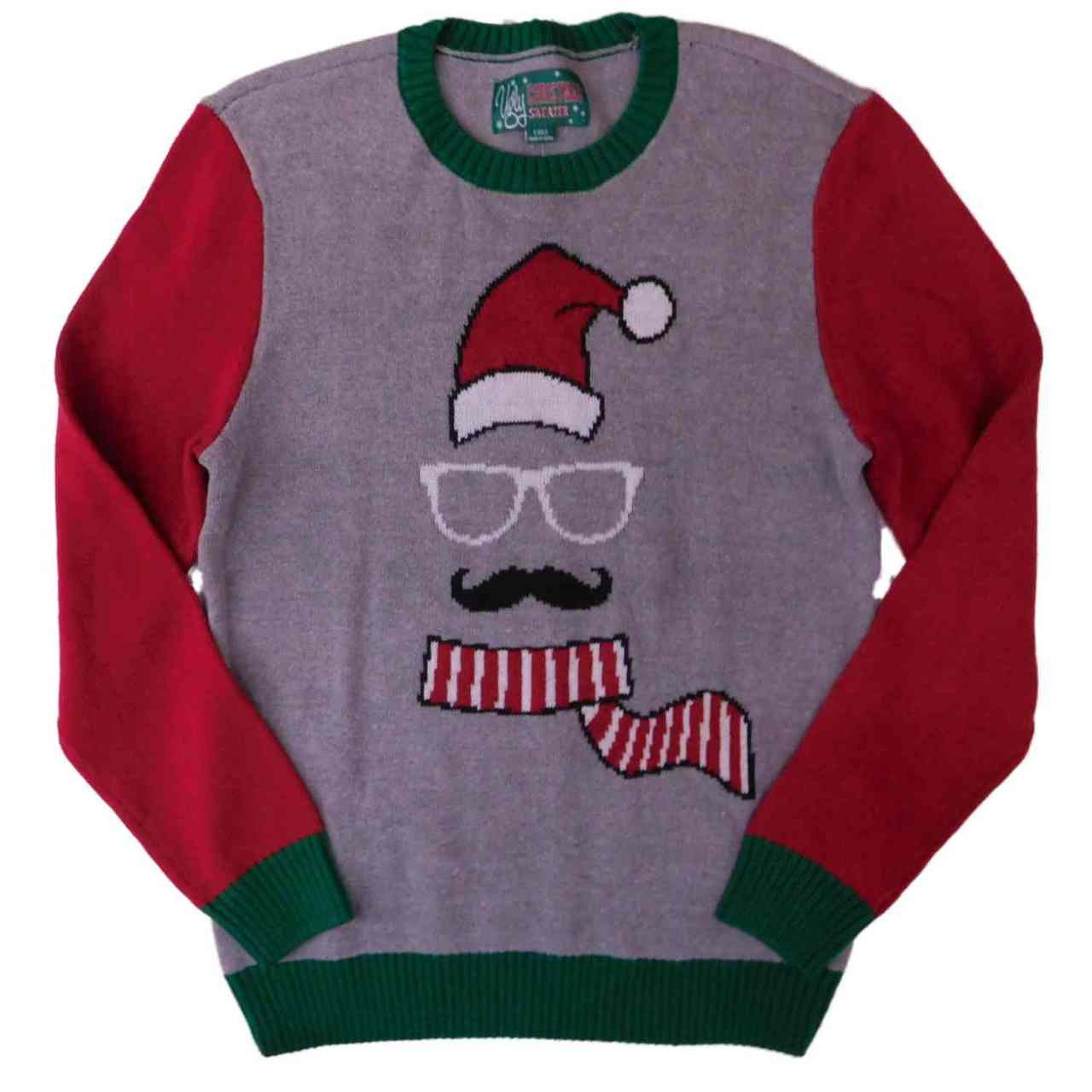 This ugly sweater has a crew neck, ribbed trim and features an invisible man design on the front. A perfect thing to wear at holiday office parties!