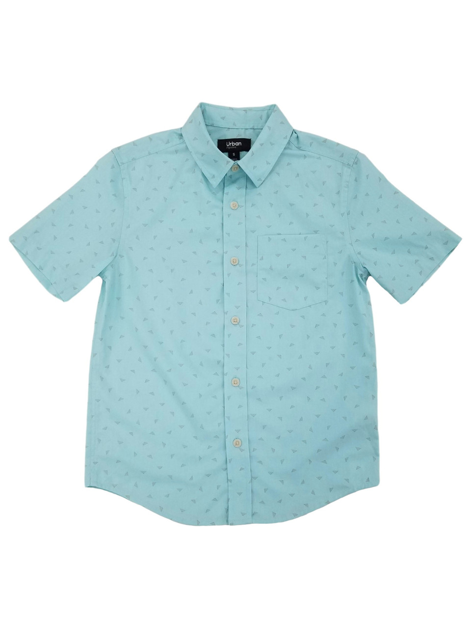 - Urban Pipeline Boys Aqua Geo Short Sleeve Button-Down Poplin Shirt
