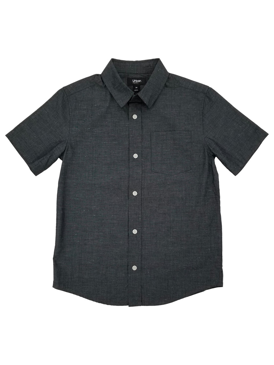 - Urban Pipeline Boys Black Heather Short Sleeve Button-Down Poplin Shirt