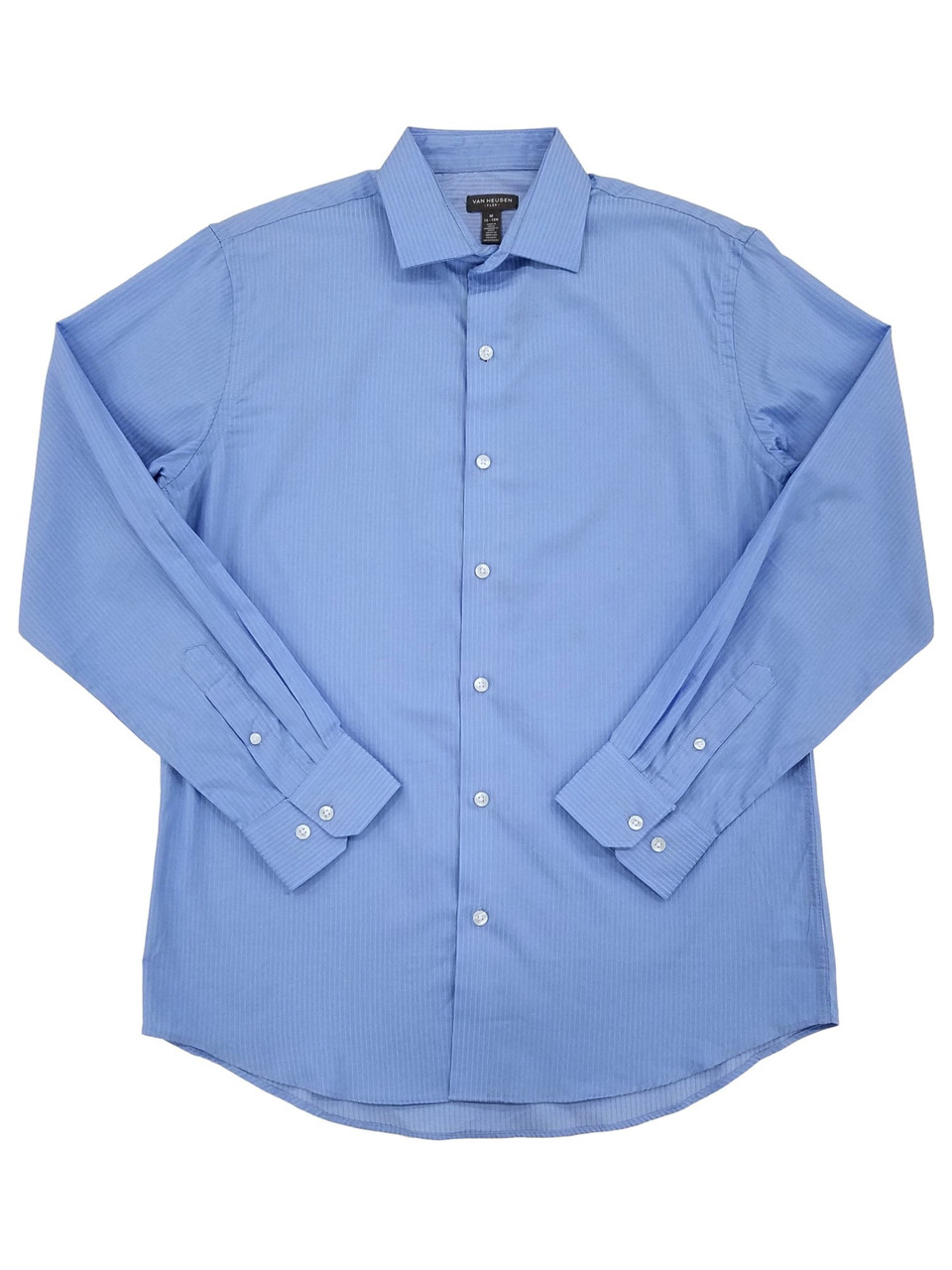 - Van Heusen Mens Vista Blue Sateen Stripe Flex Long Sleeve Button-Up Shirt