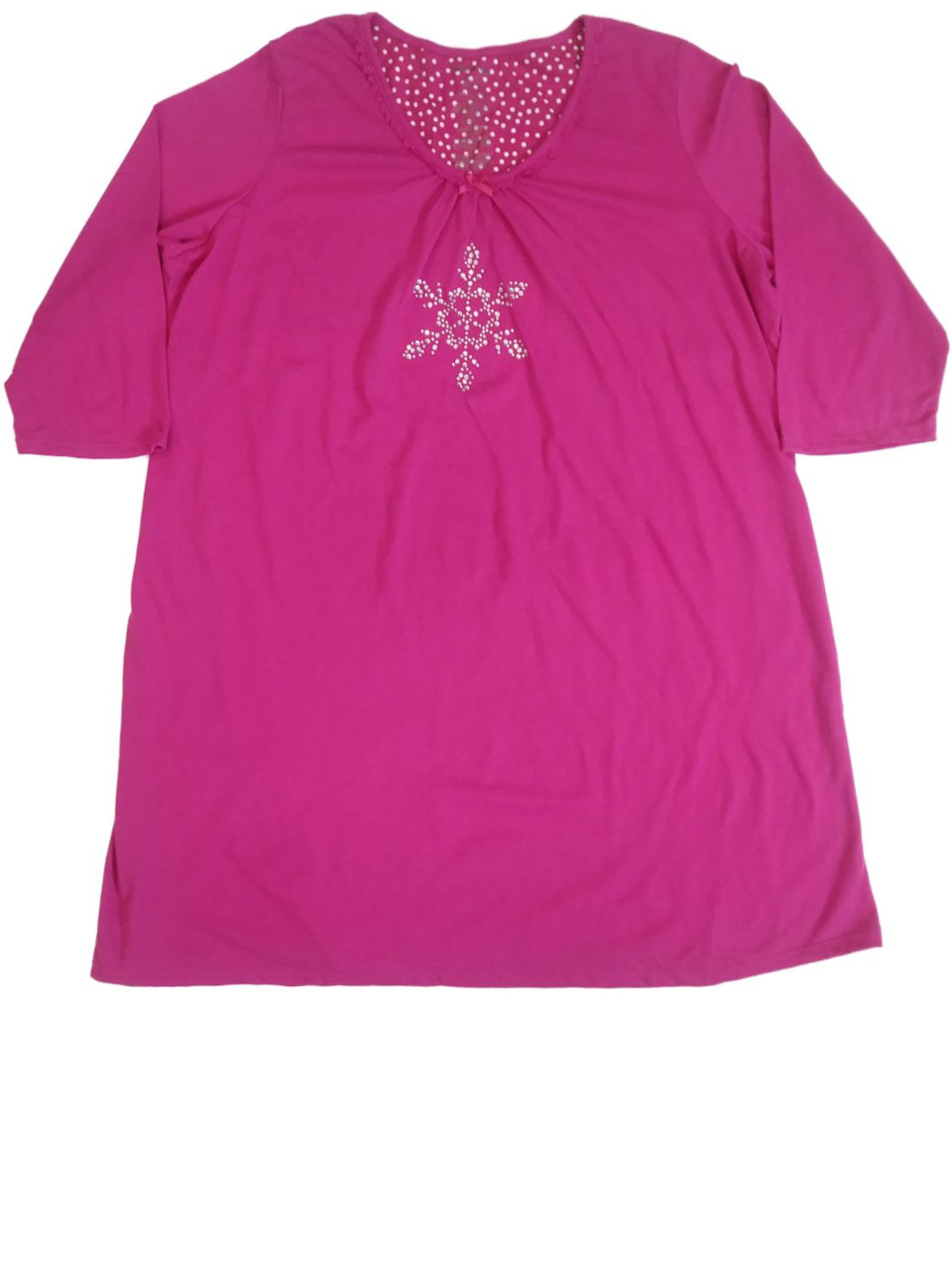 - White Stag Womens Fuchsia Pink Rhinestone Snowflake Sleep Shirt Nightgown