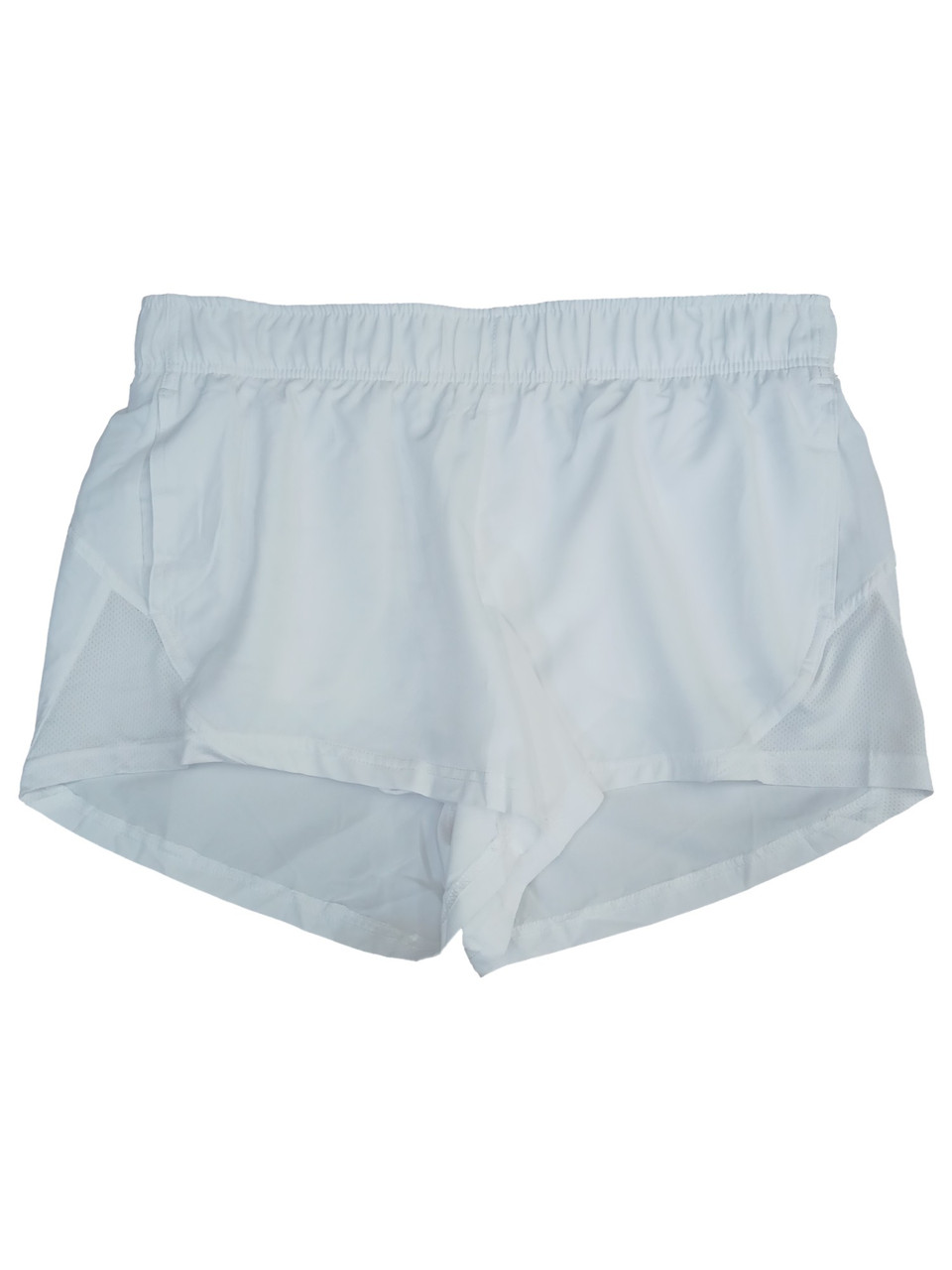 You will be ready for summer in these white athletic lined running shorts with pockets!