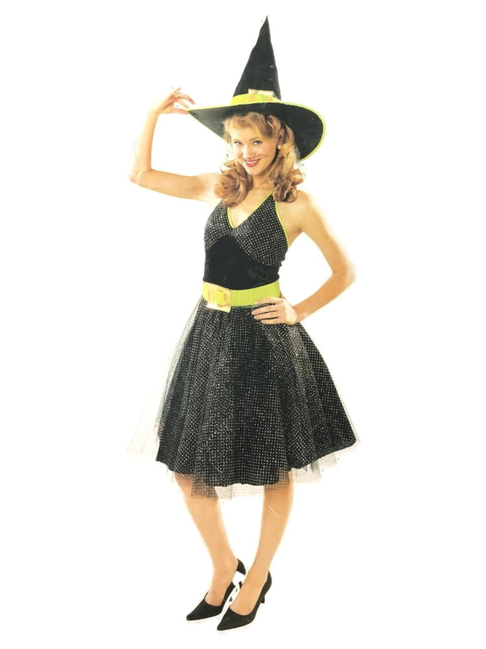 You will be ready for all of the Halloween parties in this fun black bedazzling witch costume with 50s style dress & hat!