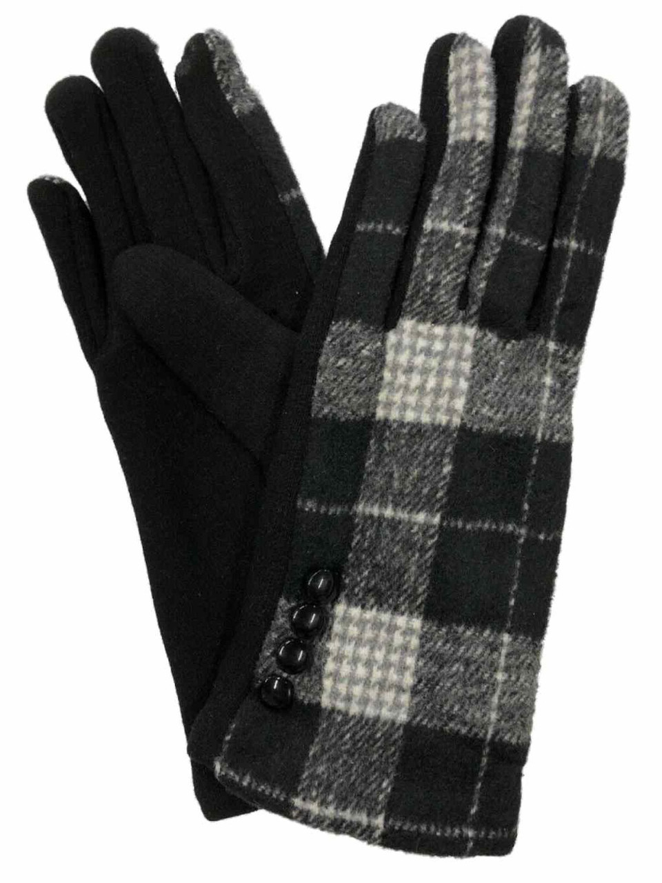 - Womens Black Button Buffalo Plaid Stretch Fit Texting & Tech Touchscreen Gloves