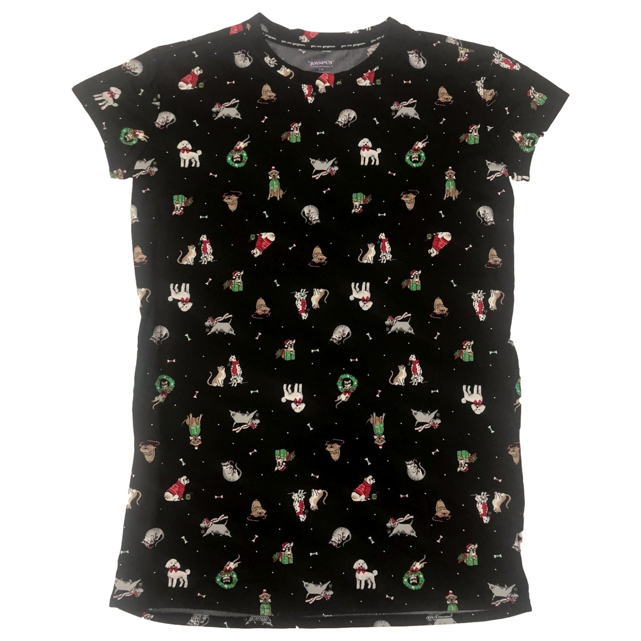 - Womens Black Dog Print Christmas Holiday Nightgown Sleepshirt