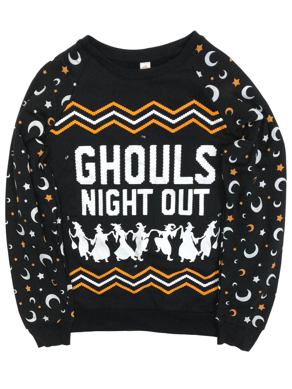 - Womens Black Ghouls Night Out Light Up Halloween Sweatshirt Sweat Shirt