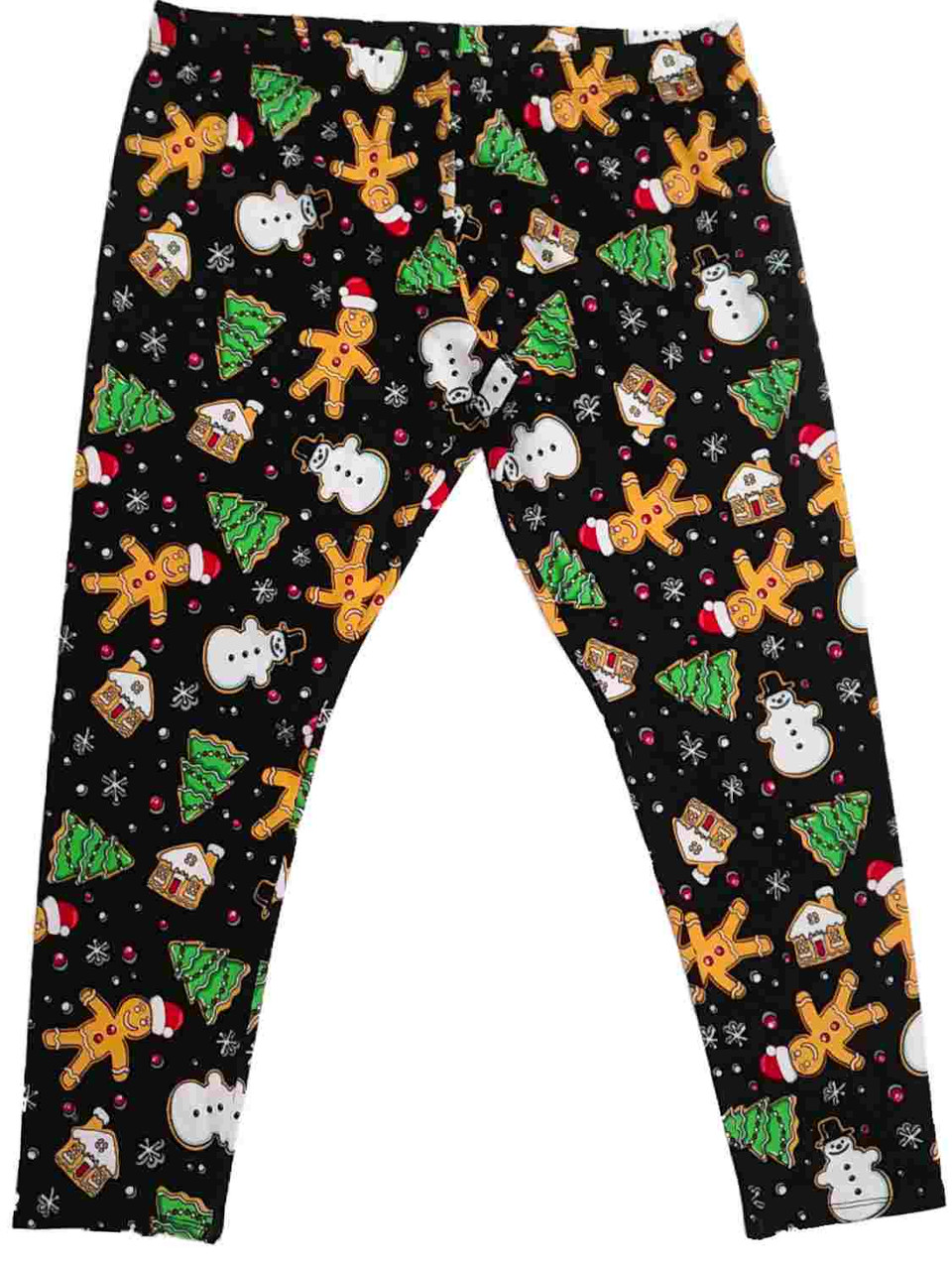 These comfy knit leggings with fun gingerbread men houses and snowmen are sure to be a favorite!