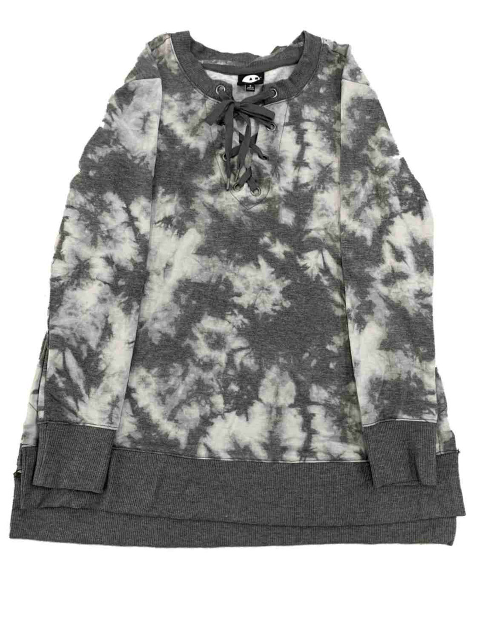 - Womens Black & Grey Camo Front Lace-Up Lightweight Sweatshirt Shirt Top