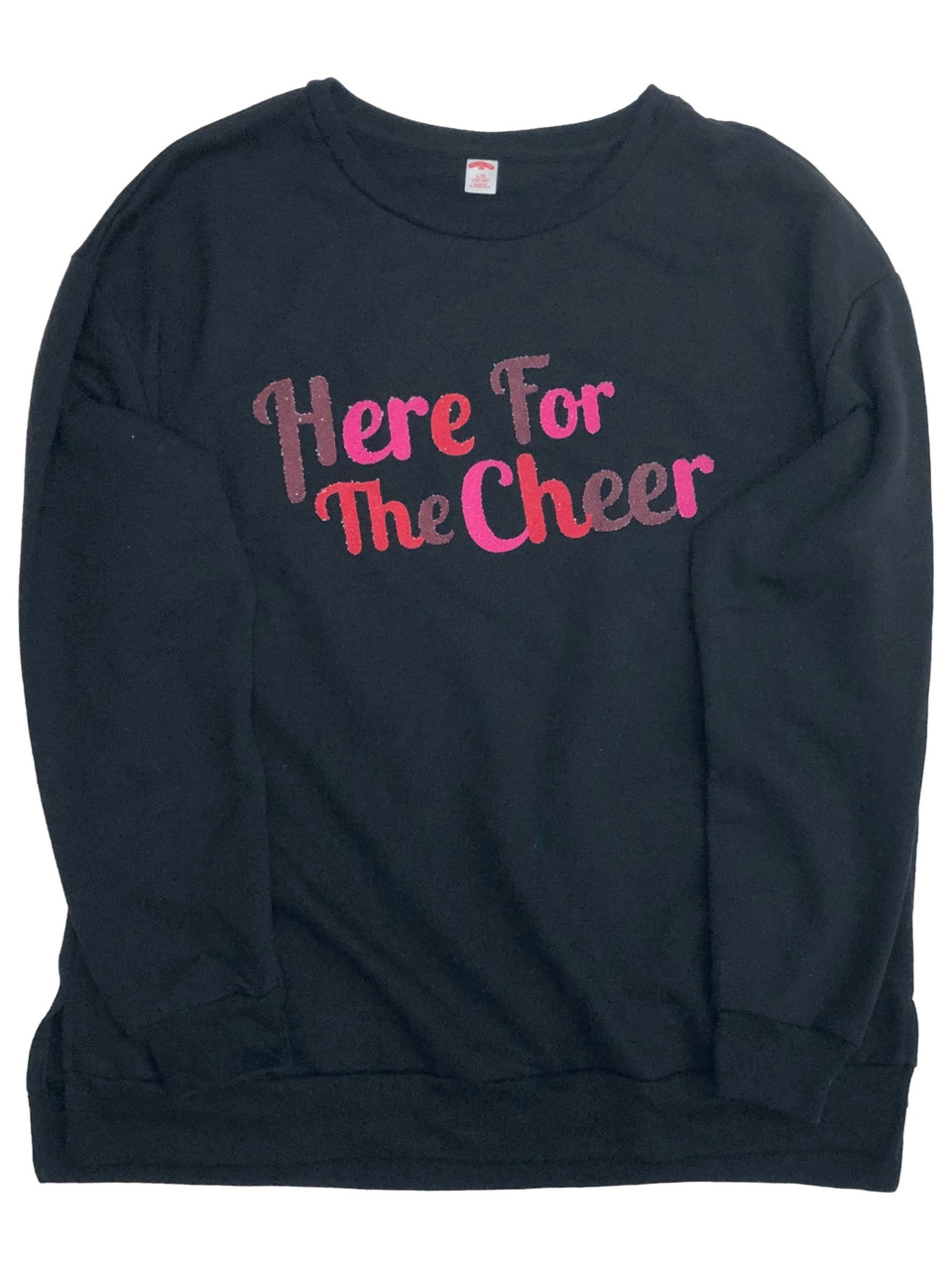 You will be ready for the holidays in this fun black split side "Here for the cheer" Christmas sweatshirt!