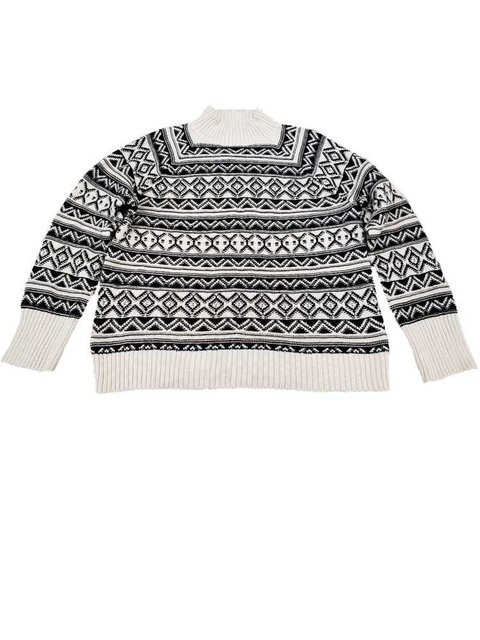 - Womens Black & Ivory Stripe Patterned Long Sleeve Warm Knit Winter Sweater XXL
