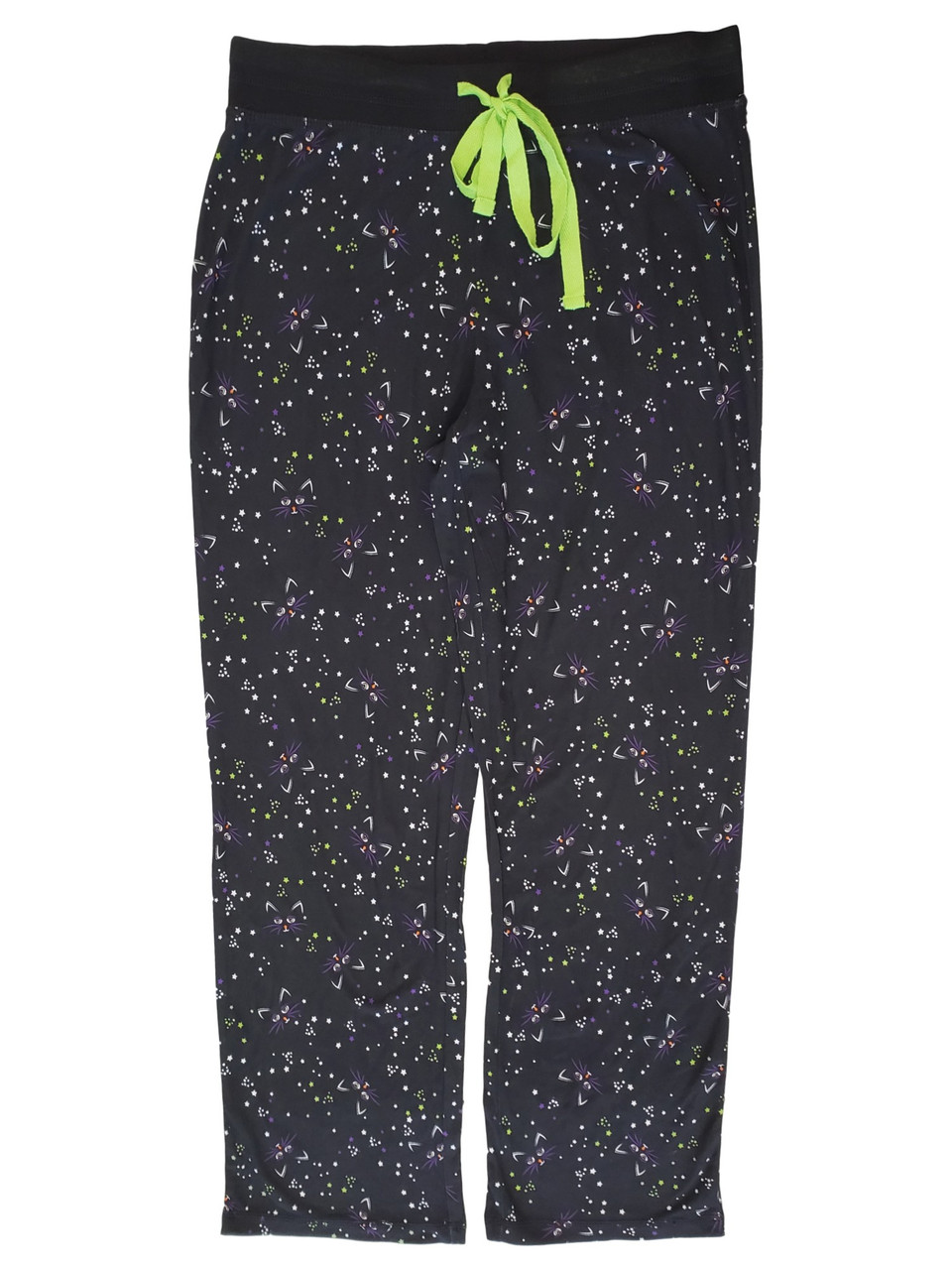 - Womens Black Night Sky Stars Kitty Cat Face Halloween Sleep Pant Pajama