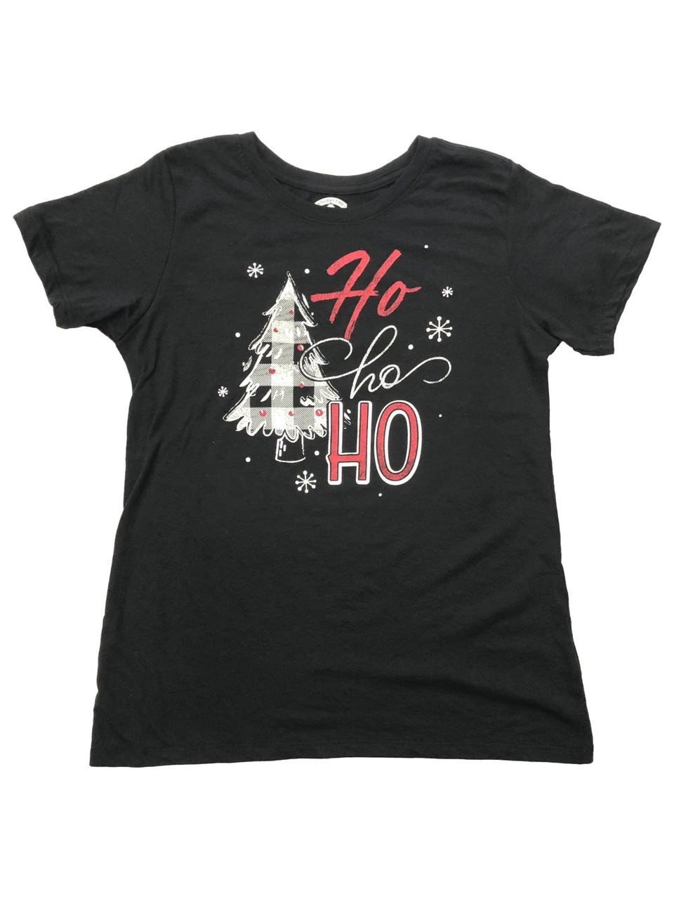 - Womens Black Plaid Ho Ho Ho Christmas Tree Holiday Tee Shirt T-Shirt