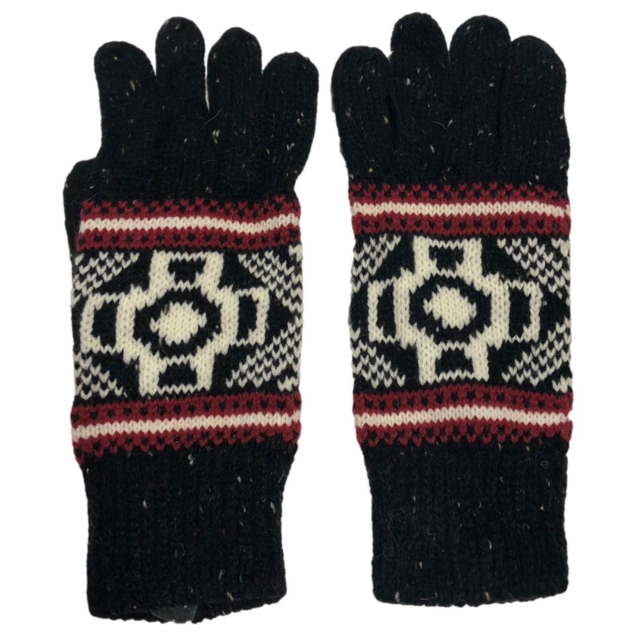- Womens Black & Red Geometric Print Stretch Fit Knit Gloves