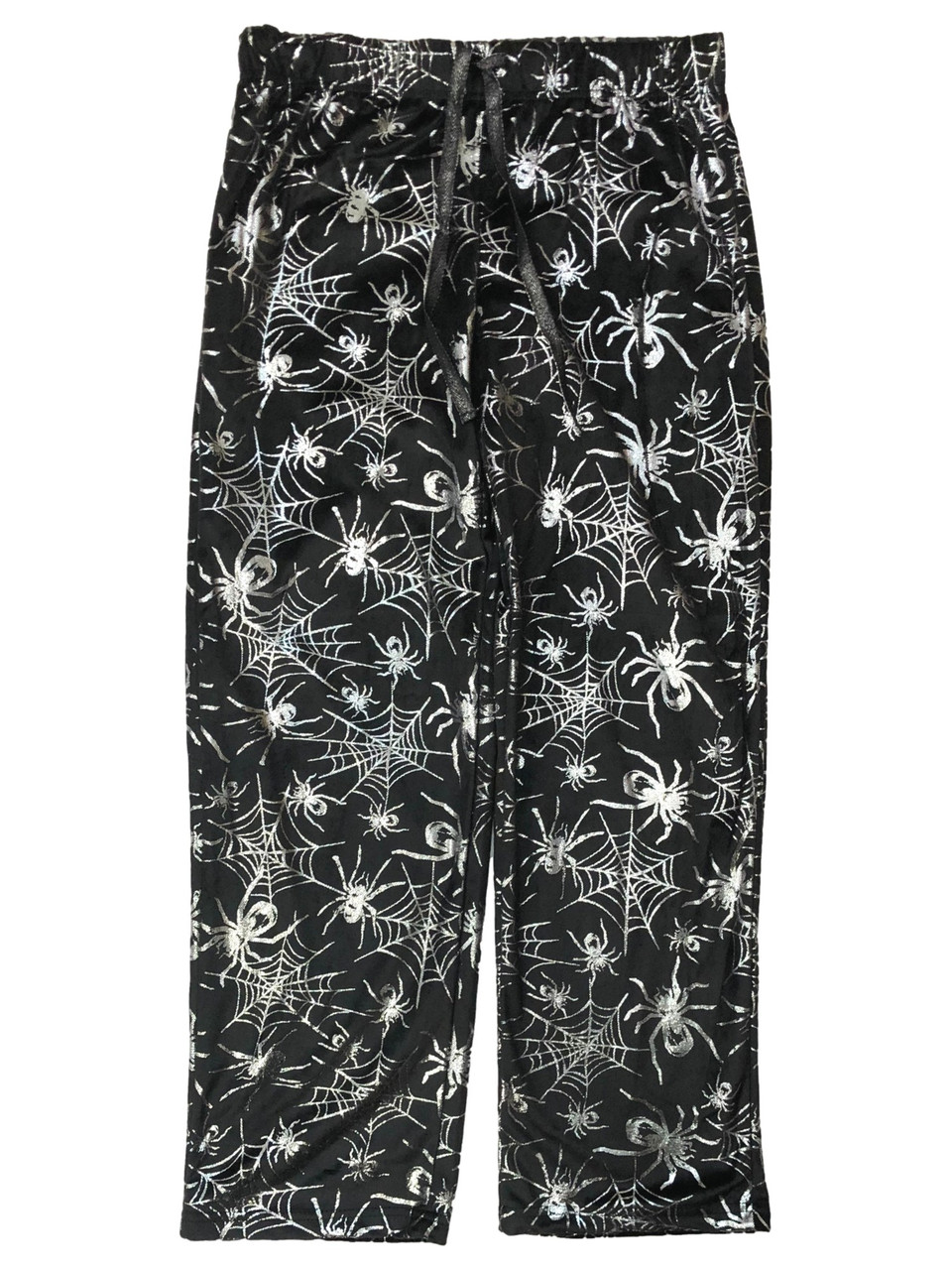 - Womens Black & Silver Spider Halloween Sleep Pants Pajama Bottoms