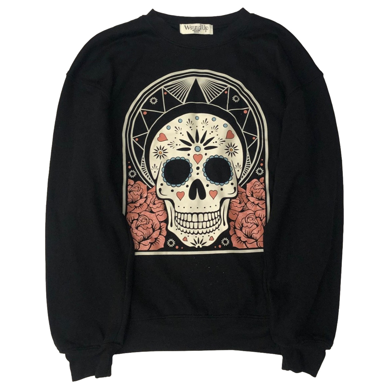 - Womens Black Skull Themed Day of the Dead Halloween Sweatshirt Sweat Shirt XXS