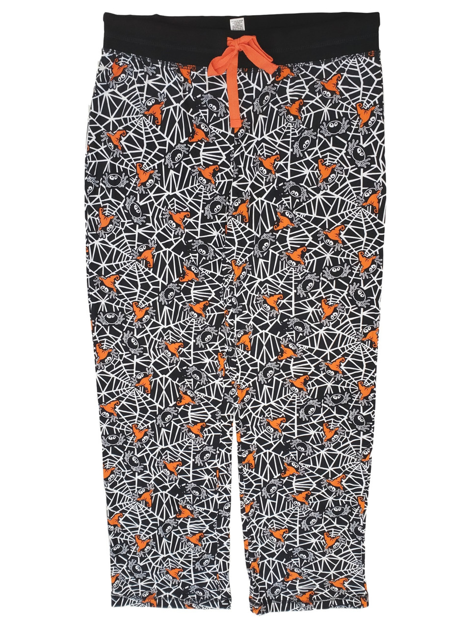 - Womens Black Spider & Web Orange Hat Halloween Sleep Pant Pajama Bottom