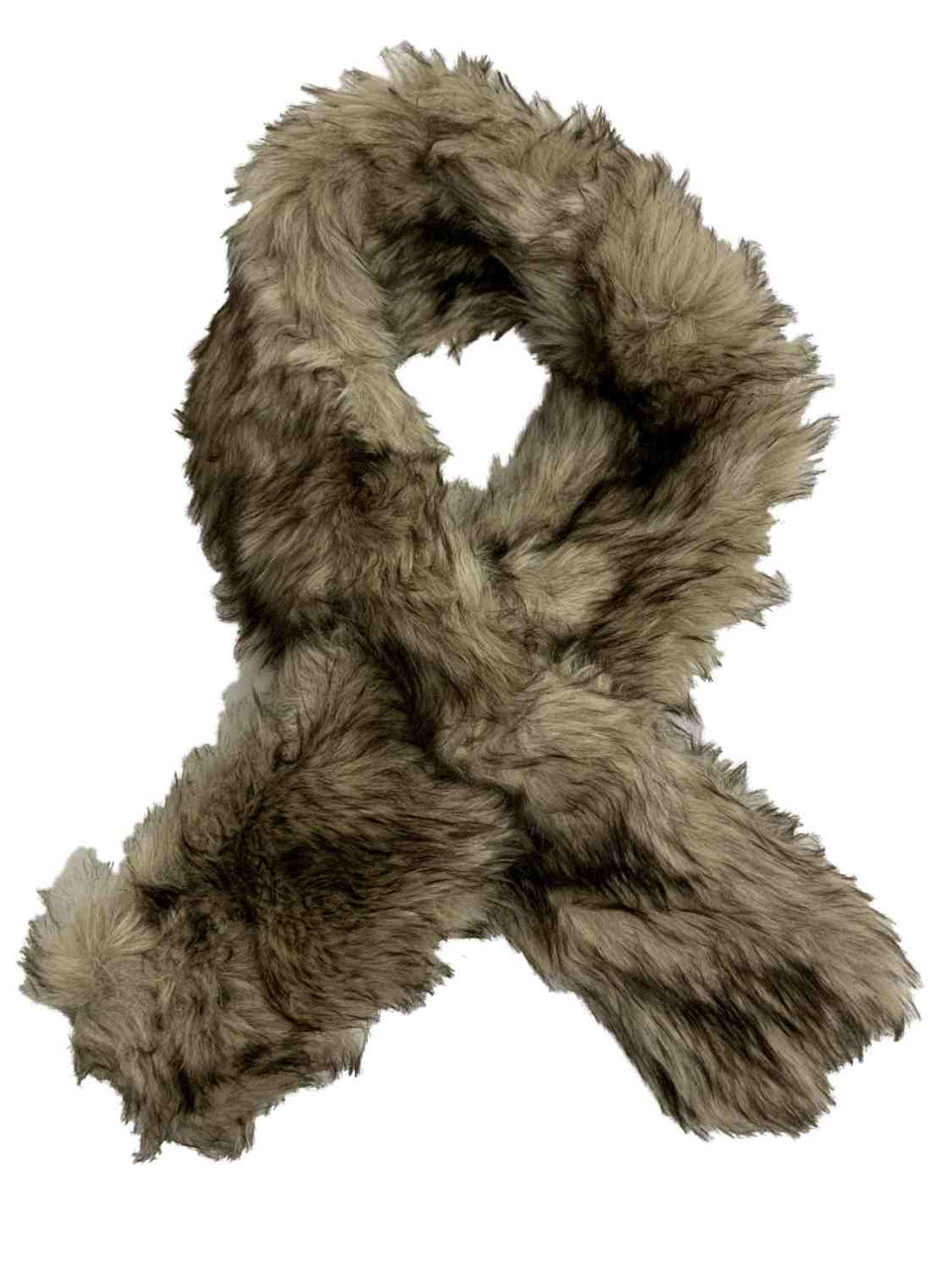 - Womens Black & Tan Coyote Pull Through Faux Fur Scarf Muffler