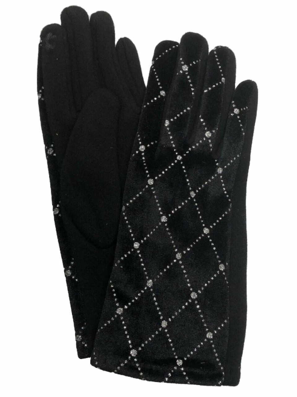 - Womens Black Velvet Diamond Soft Stretch Texting & Tech Touchscreen Gloves