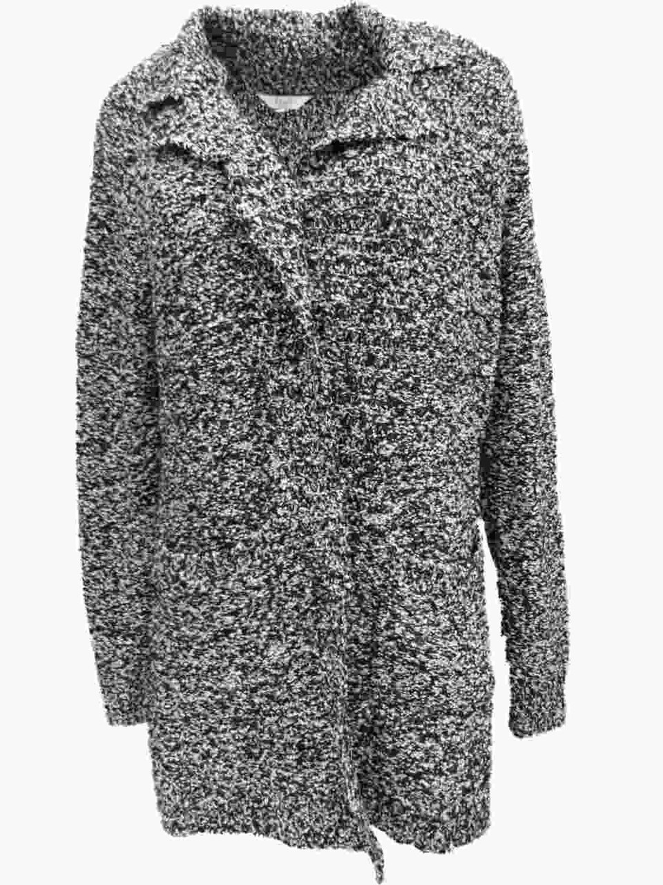 - Womens Black & White Cable Knit Notch Collar Sweater Casual & Dress Cardigan