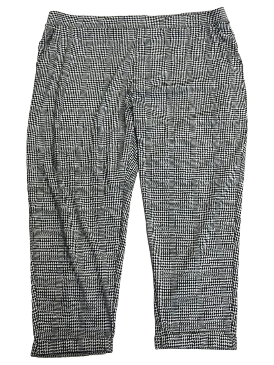 - Womens Black & White Houndstooth Relaxed Stretch Fit Tapered Pull On Pants