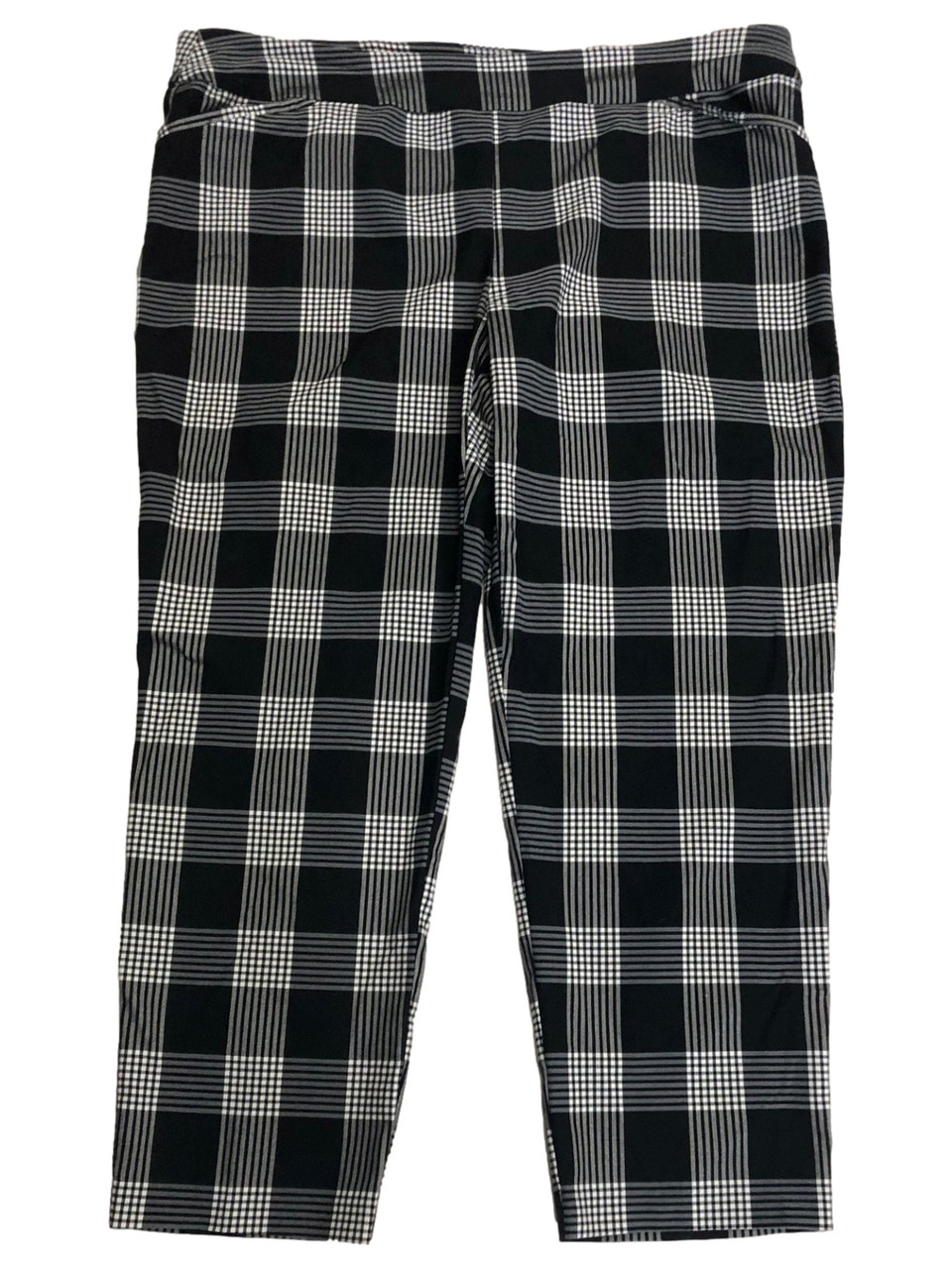 - Womens Black & White Plaid Tummy Control Stretch Fit Pull On Pants